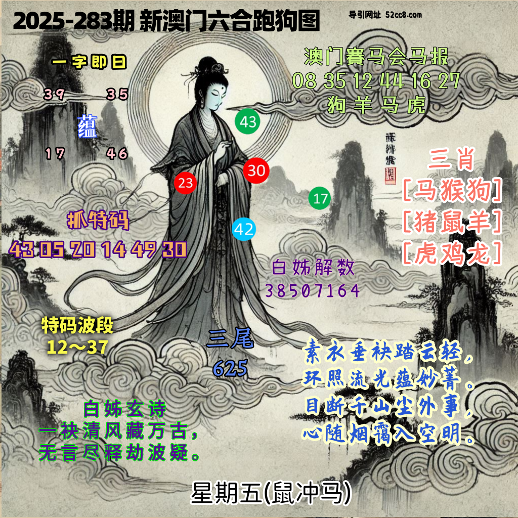 第283期:诗云:素衣垂垂,仙意巍巍。烟峦作伴不思归。小小争抢,不值一提。世上何处不契机。