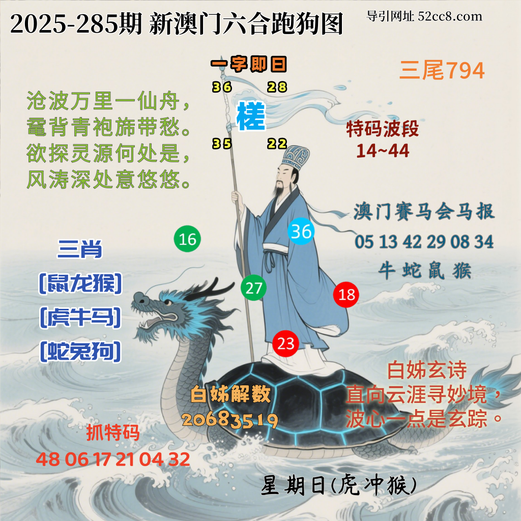 第285期:诗云:龙龟破浪,仙旆飘扬。渡海一心没退让。小小浪涛,敢挡路央。世上何处不拼闯。