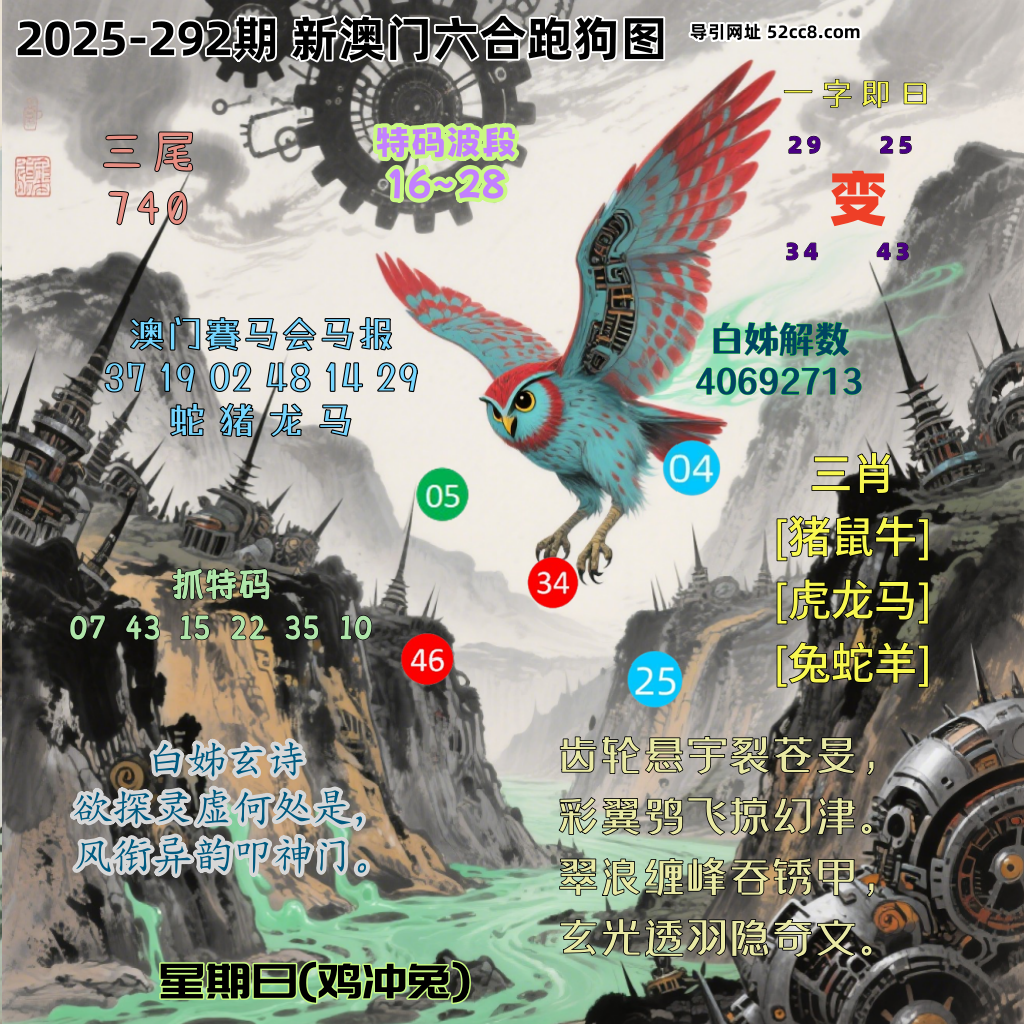 第292期:诗云:青羽鸮掠,巨轮碾过。峡谷抢地盘没回转。丁点机械,敢来叫板。世上何处不交战。