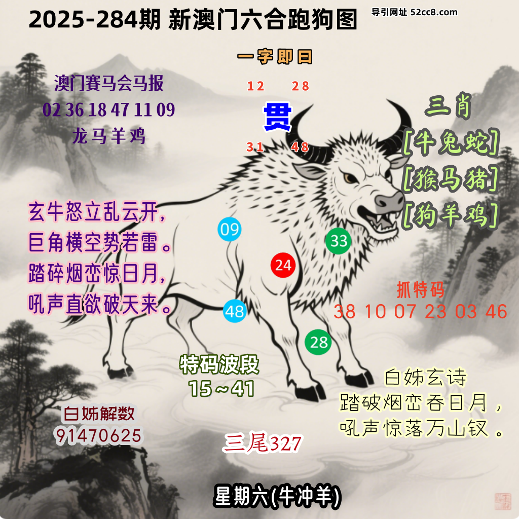 第284期:诗云:怒牛驾雾,凶威贯目。云间踏碎青山路。谁来占地,直接撞哭。世上何处不威伏。